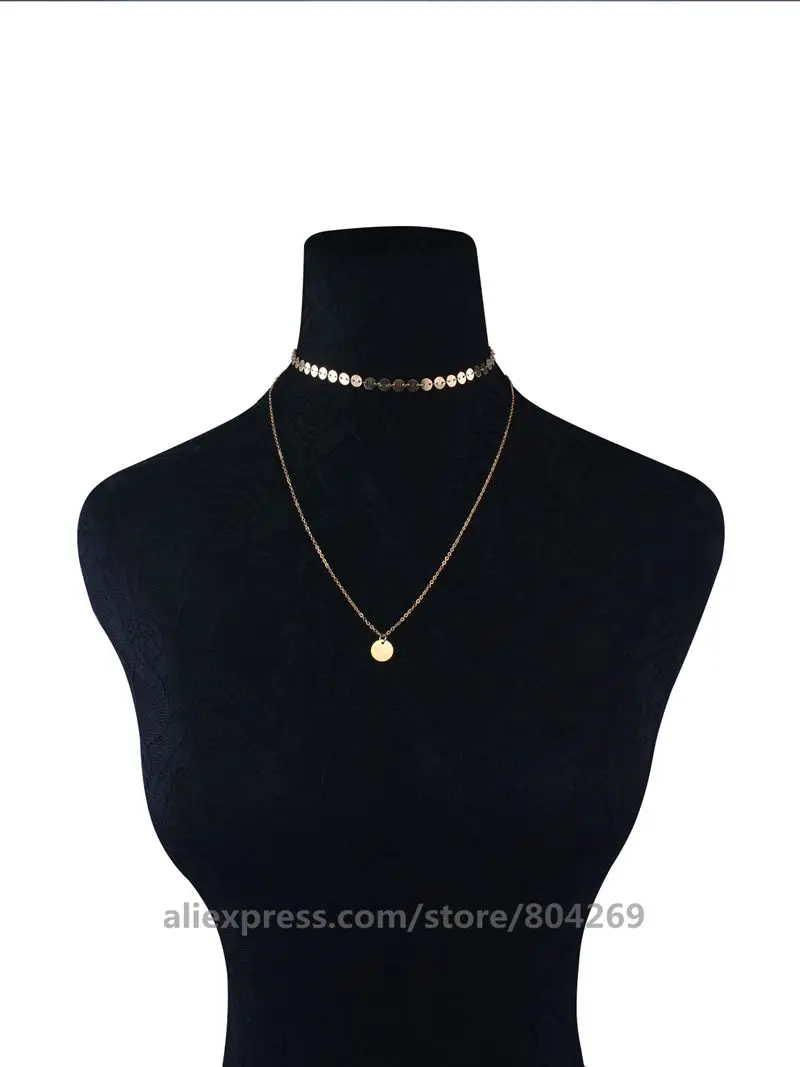 Special Offer 200 Pçs/lote Hot Moda Camada Dupla Moeda Colar Bohemia Lantejoulas Redondas Gargantilha Pingente De Colar No Pescoço Cadeia De Jóias Discount (49%OFF) Today!