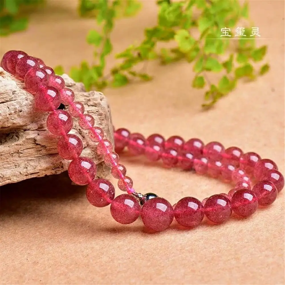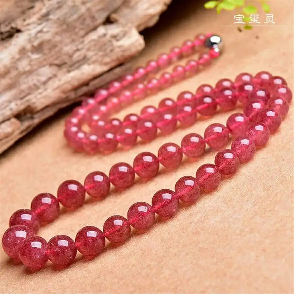 Product Name: Genuine Natural De Gelo De Morango Colar De Quartzo Para A Mulher Dos Homens Do Presente Do Amor 5-12mm Rodada Contas De Cristal Gargantilhas Moda Colar AAAAA