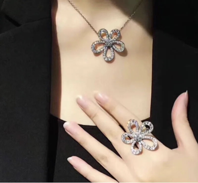 Product Name: Moda Famosa Marca Para As Mulheres Irregular Oco Flor Colar 5 Peça Verão Praia Gargantilha Jóias De Prata Esterlina