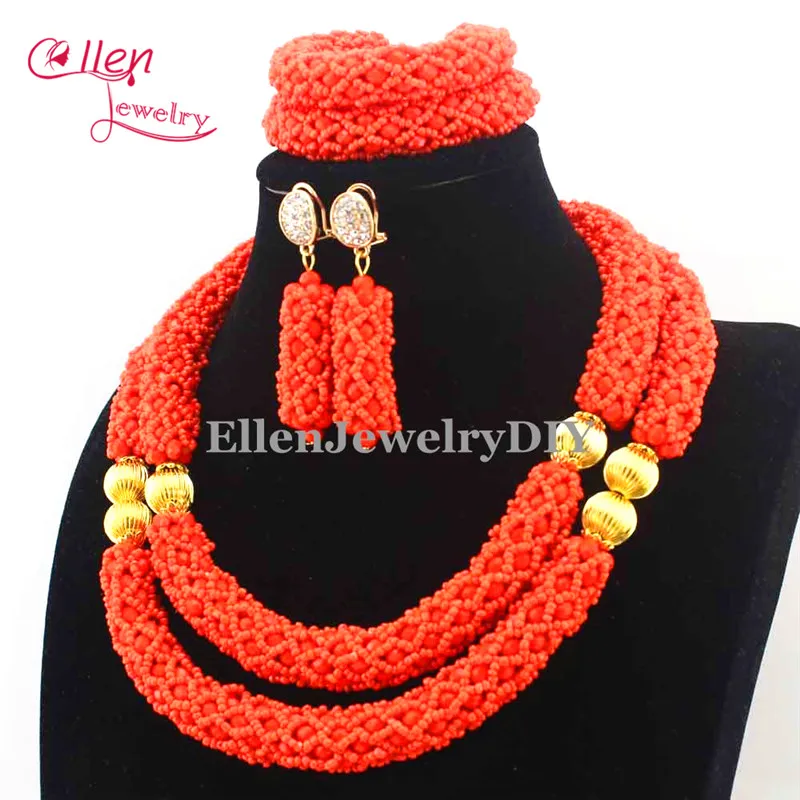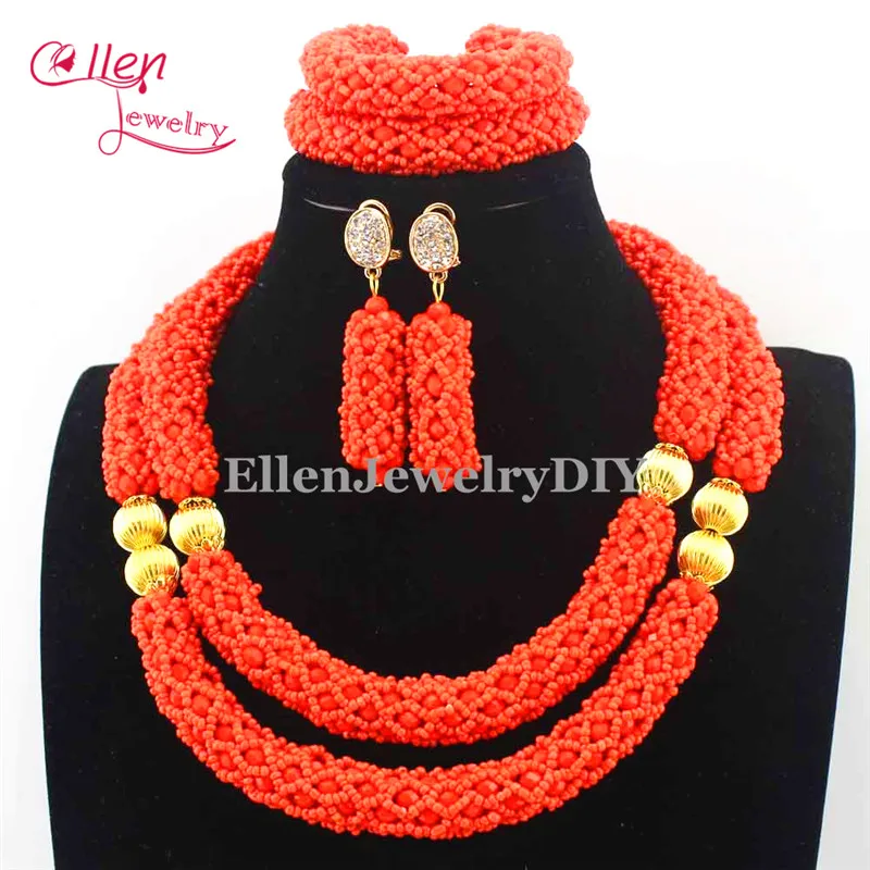 Special Offer 2019 Mais Recente Casamento Nigeriano Contas Mulheres Colar Gargantilha Jewlery Set Laranja Contas De Cristal Africanos Jóias Define E1063 Discount [NEW!!] Today!