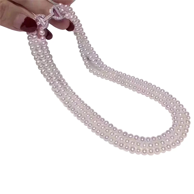 Product Name: Colar De Pérolas De Três Camadas Tecido à Mão Da Pérola Do Bebê Colar 4-5mm água Doce Pérolas Para A Namorada