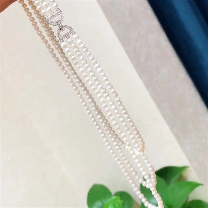 Special Offer Colar De Pérolas De Três Camadas Tecido à Mão Da Pérola Do Bebê Colar 4-5mm água Doce Pérolas Para A Namorada Discount [NEW!!] Today!