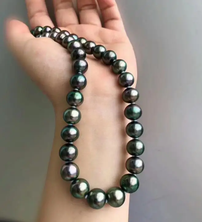 Special Offer Enorme Aaa 10-11mm Redondo Mar Do Sul Genuíno Preto Verde Pérola Colar 18 "925 Prata Ouro Discount [NEW!!] Today!