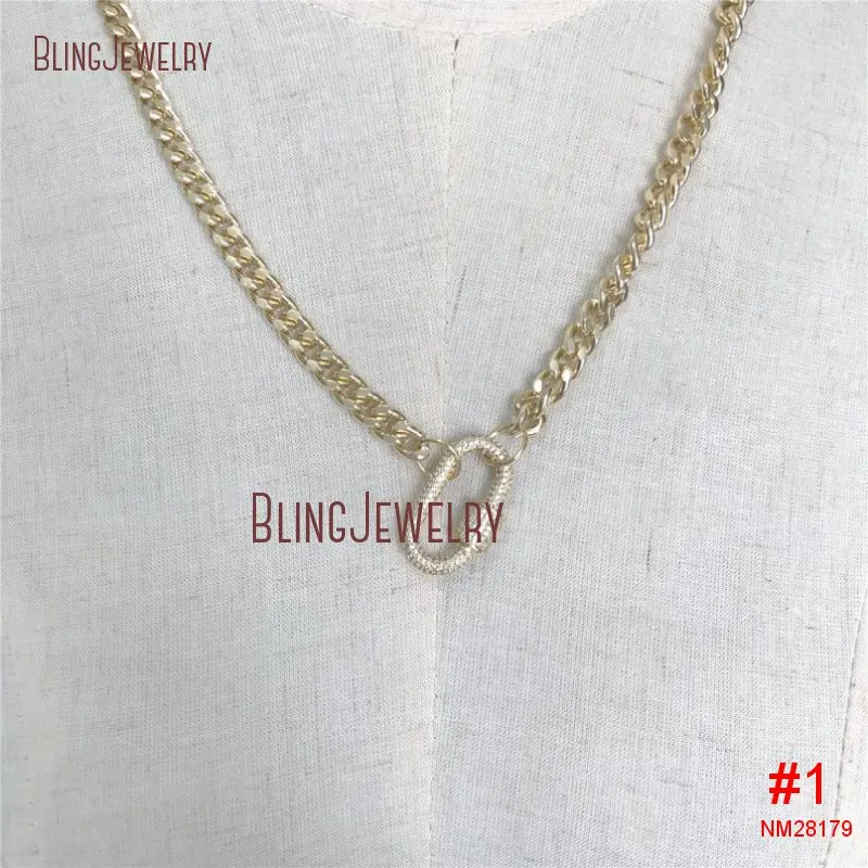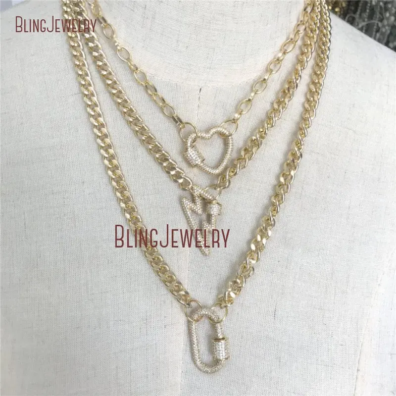 Special Offer Ouro Curb Chain Gargantilha Ouro Mergulhado Coração Oval Fecho Cz Pave Parafuso Fecho Colar Nm28178 Discount [NEW!!] Today!