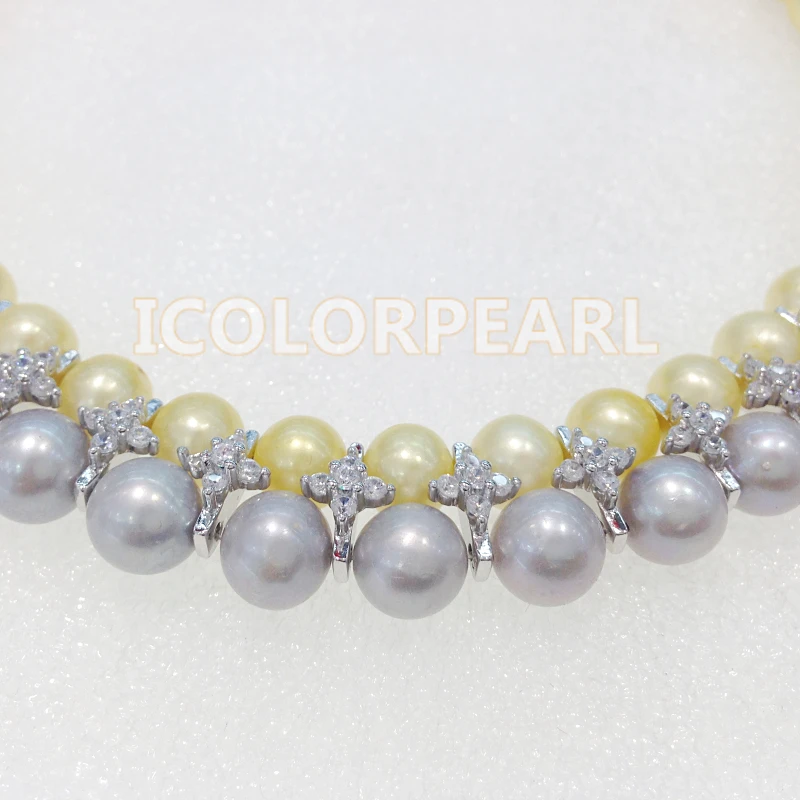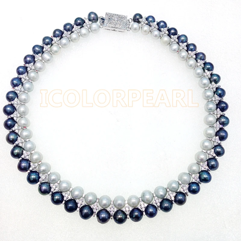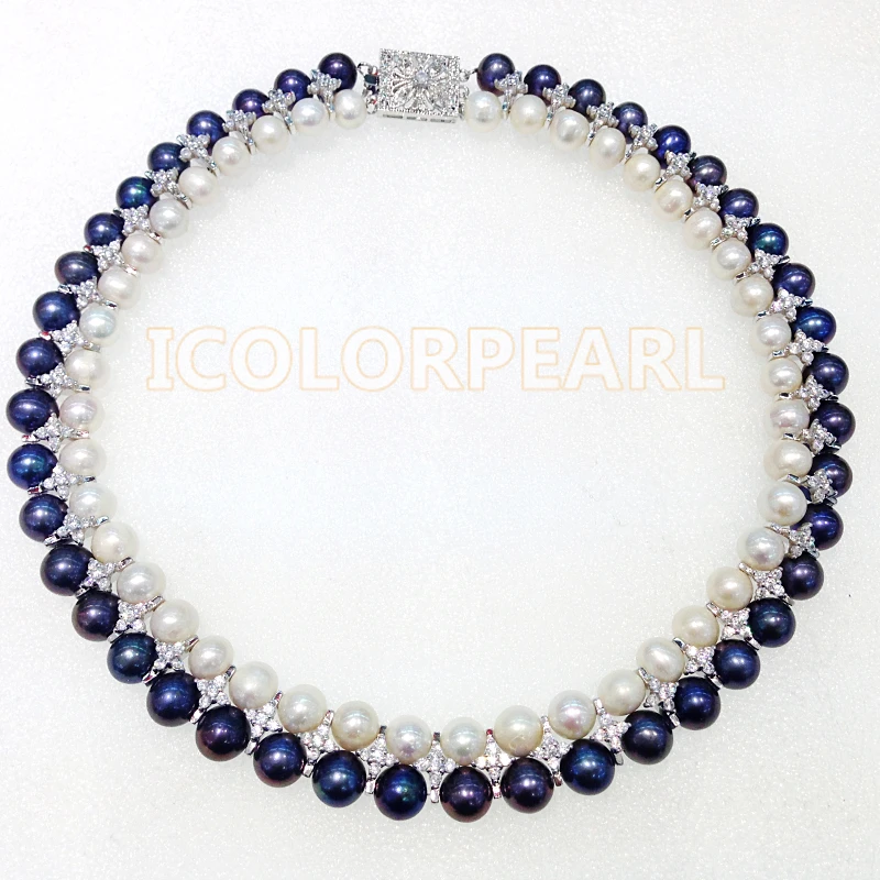Product Name: WEICOLOR Colar Mais Elegante Da China! Two-linha 8-9mm Nearround Real Natural De Água Doce Pérola Colar Da Jóia Do Casamento