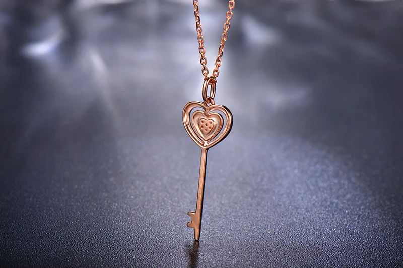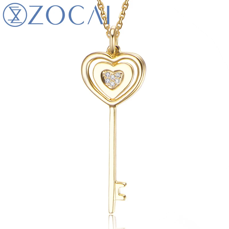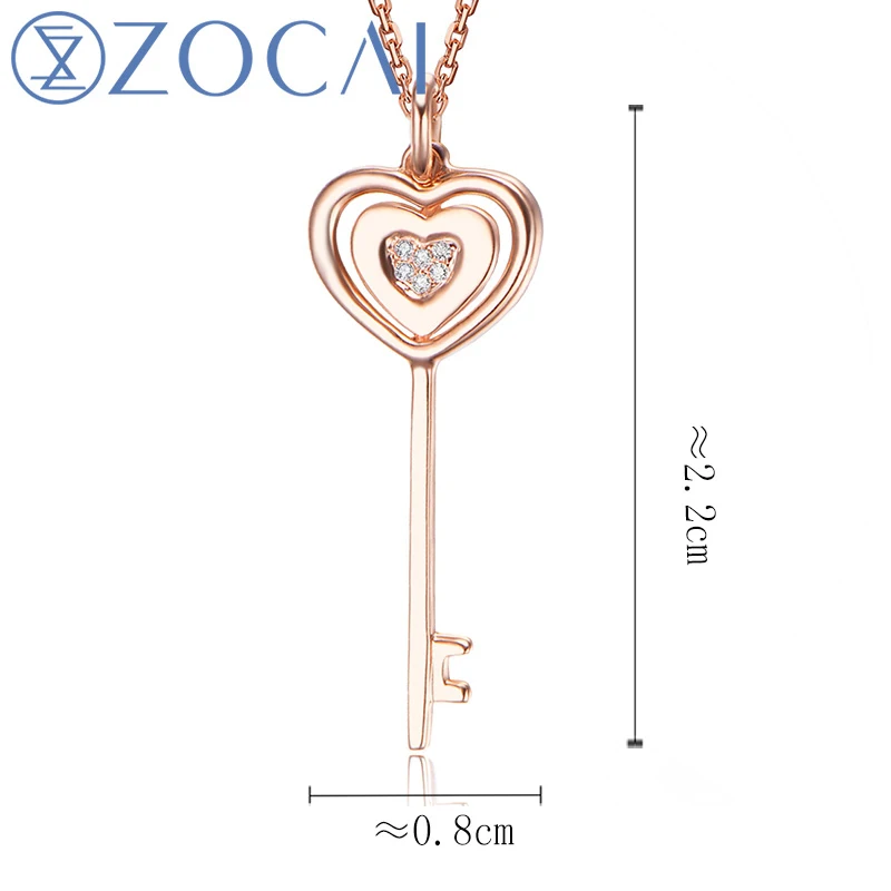Special Offer ZOCAI Forma Chave Estilo Gargantilha Reais 0.01 CT Certified H/SI Diamond Pingente 18 K Rose Gold (Au750) 925 Corrente De Prata D04805 Discount [NEW!!] Today!