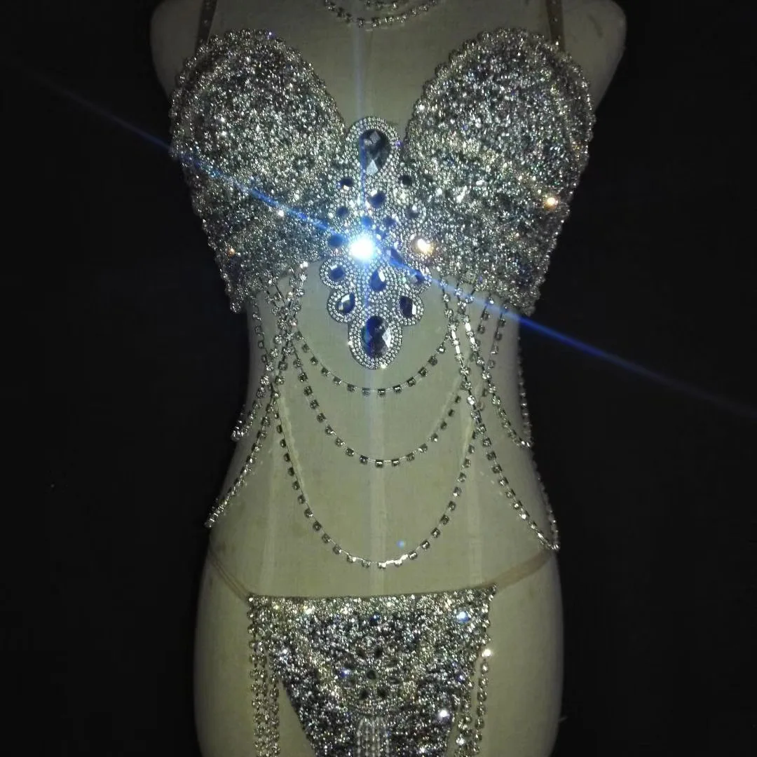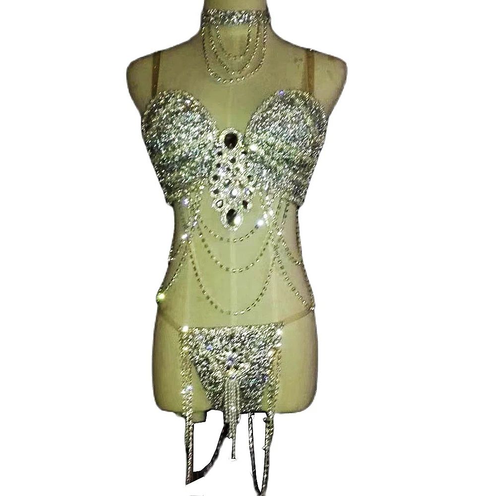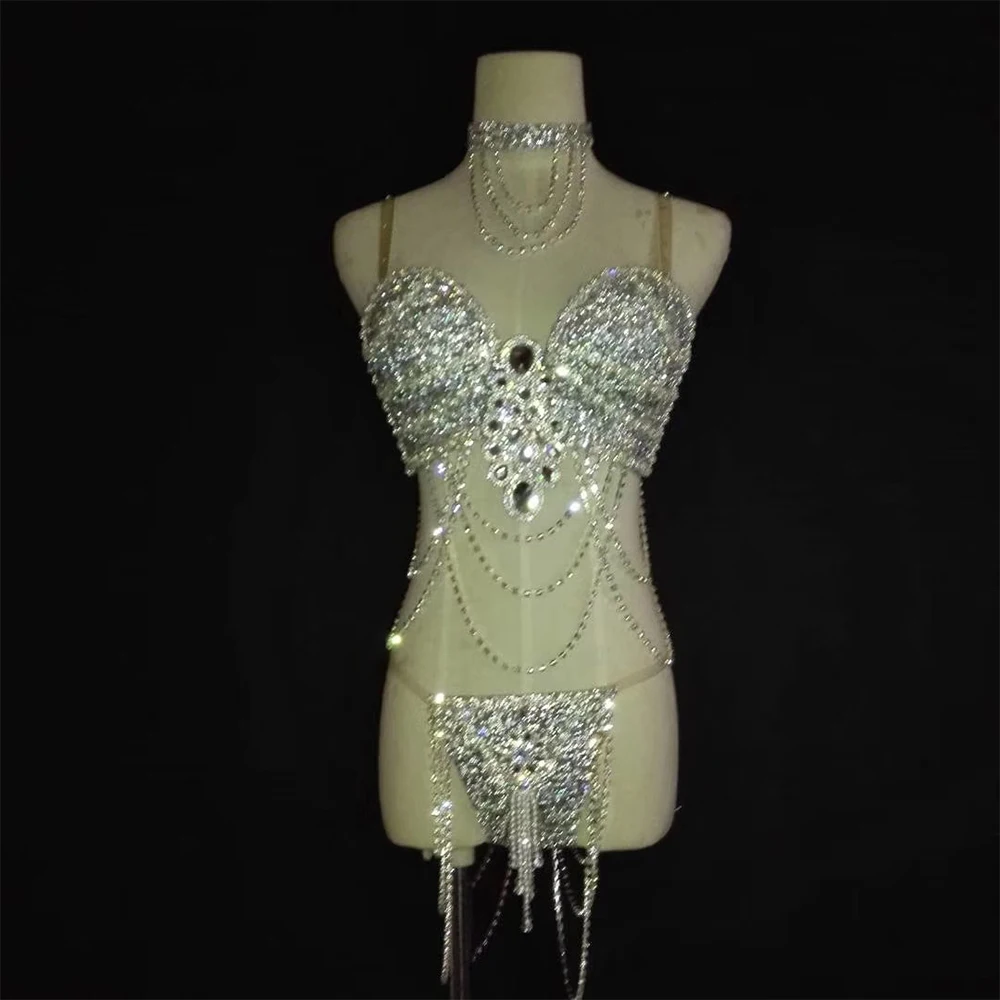 Special Offer Brilhantes Diamantes Cristais De Prata Tassel Bikini Conjunto Cintilante Sutiã Shorts Gargantilhas Discoteca Cantor Dançarino Palco Wear Bar Outfit Discount (35%OFF) Today!