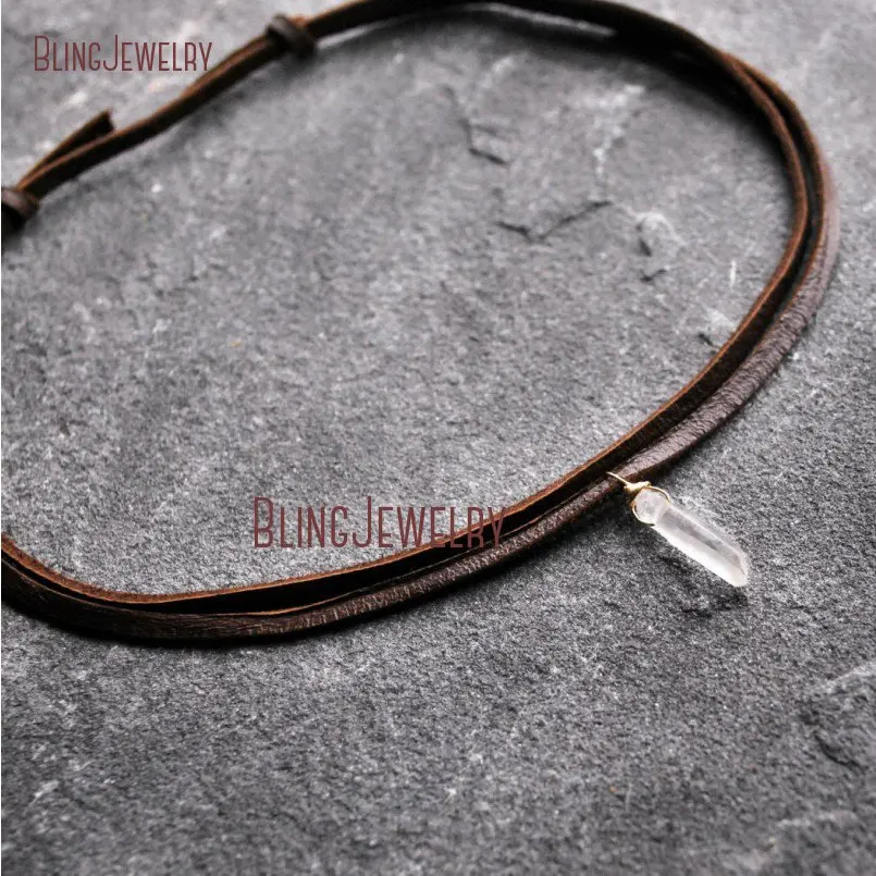 Special Offer Couro Marrom Colar Gargantilhas Colar De Cristais De Cura Ponto De Cristal De Quartzo Colar Ajustável Gargantilhas CN19668 Discount [NEW!!] Today!
