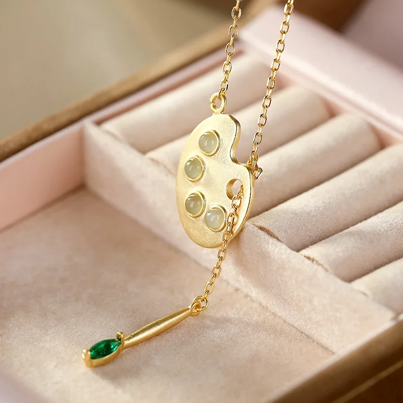 Product Name: Pure 925 Prata Esterlina Banhado A Ouro Jasper Jade Lotus Raiz Fatia Pingente Colares Gargantilhas Moda Jóias Para As Mulheres Melhores Presentes
