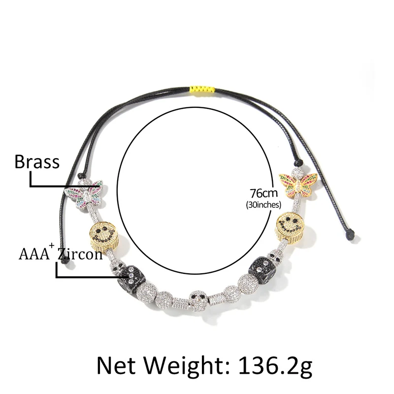 Product Name: Hip Hop Bling Iced Para Fora Dados Crânio Borboleta Smiley Link Corrente Gargantilhas Colares Para Homem Feminino Rapper Jóias Transporte Da Gota