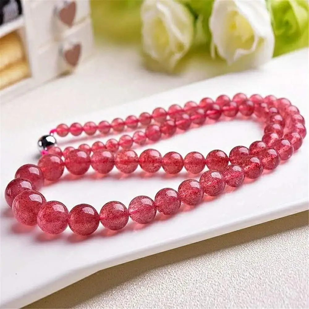 Product Name: Genuine Natural De Gelo De Morango Colar De Quartzo Para A Mulher Dos Homens Do Presente Do Amor 5-12mm Rodada Contas De Cristal Gargantilhas Moda Colar AAAAA