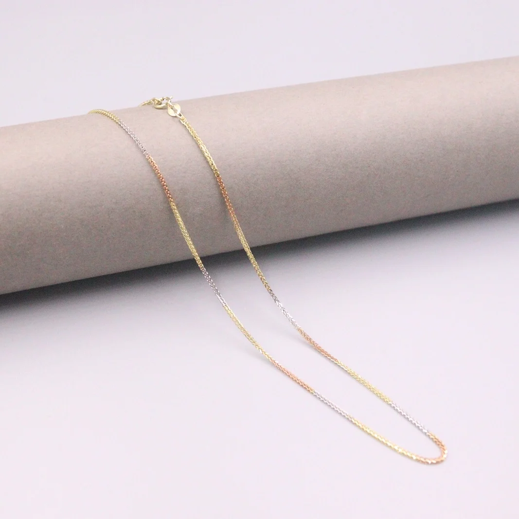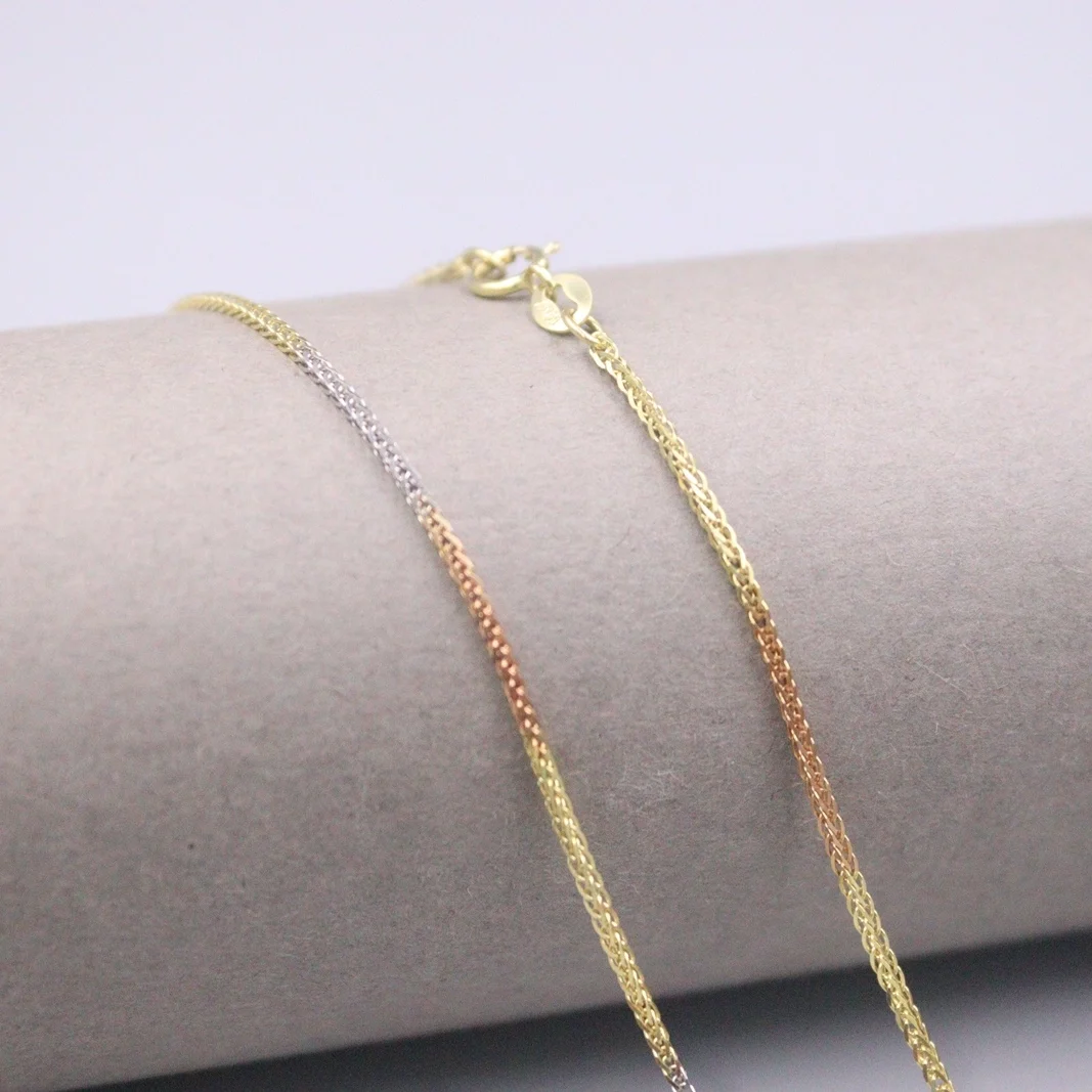 Product Name: Au750 Real 18k Multi-tom Corrente De Ouro Neckalce Para Feminino 0.9mm Trigo Cor Link Gargantilha Colar De Ouro 16'gift L Presente