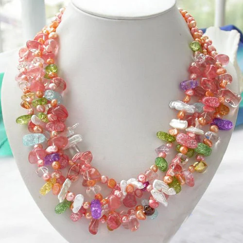 Special Offer Colar De Pérolas De água Doce, 4 Linhas 19 Polegadas Multicolorido Cristal Rosa Arroz Cultivado Pérola Jóias, Novo Frete Grátis Discount [NEW!!] Today!