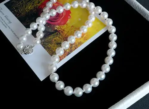 Product Name: Lindo 9-10mm De água Doce Redondo Branco Pérola Colar 20 Polegada 925 Sliver Fecho
