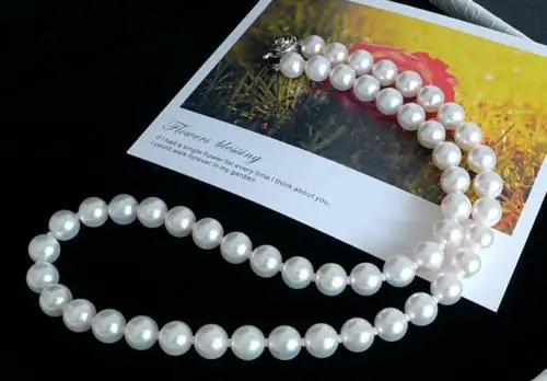 Special Offer Lindo 9-10mm De água Doce Redondo Branco Pérola Colar 20 Polegada 925 Sliver Fecho Discount [NEW!!] Today!