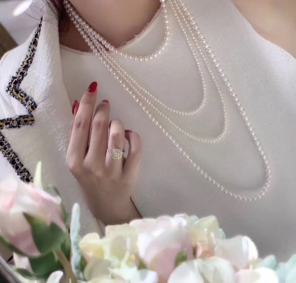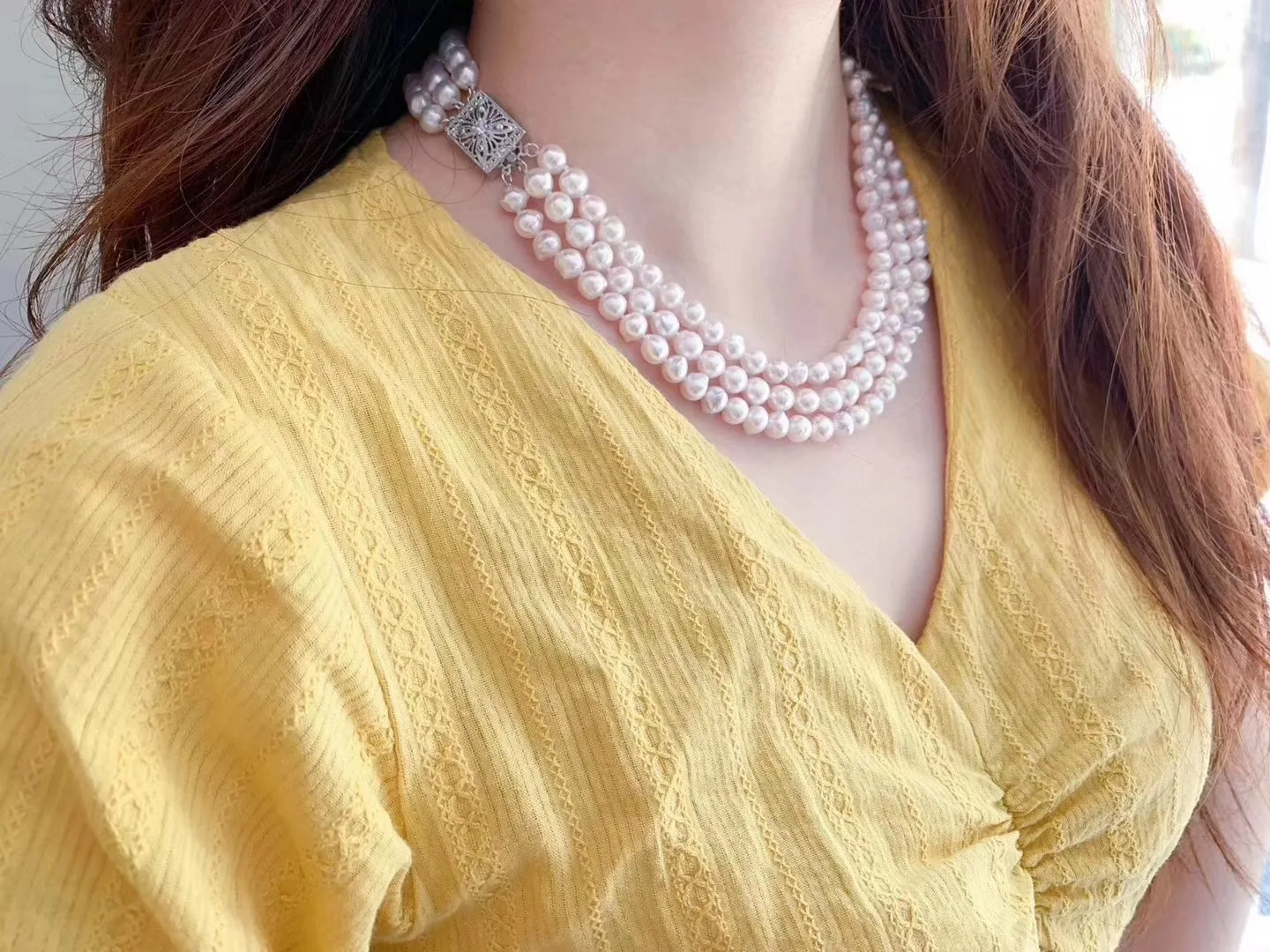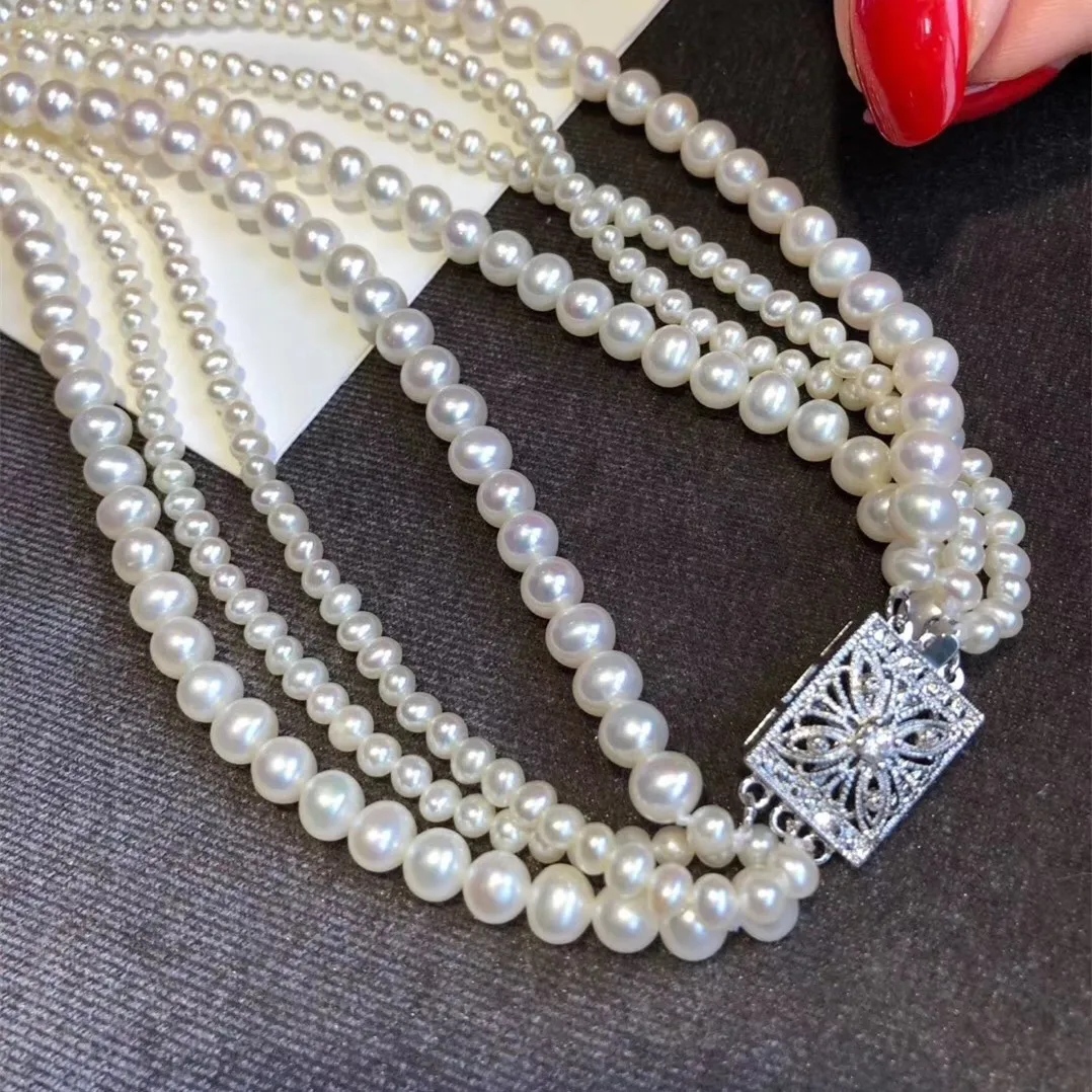 Product Name: Madalena Sarara Platinum Chapeado Retro Multi Fileira Três Fileira 6-7mm Colar De Pérolas De água Doce