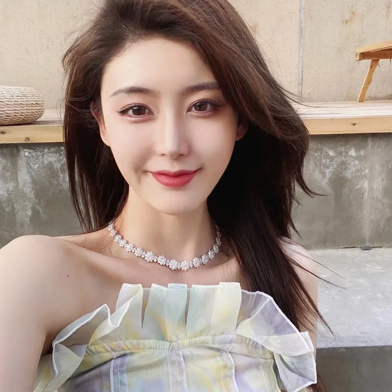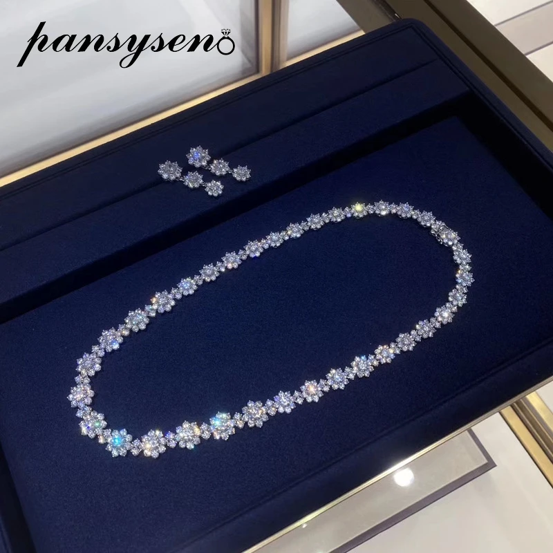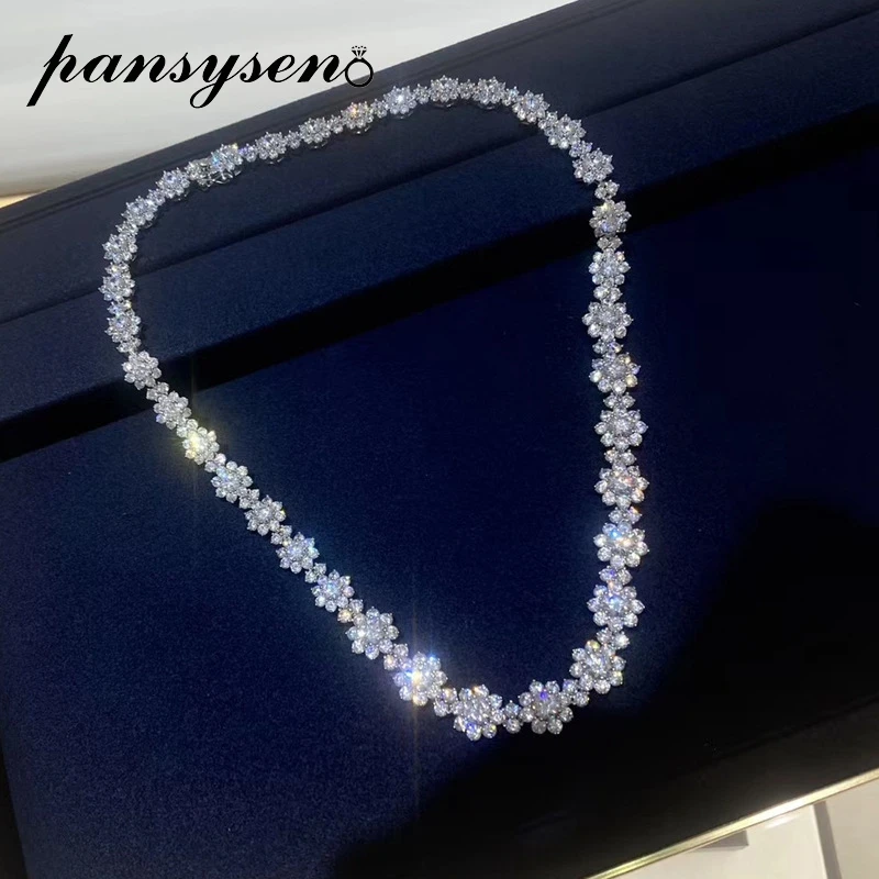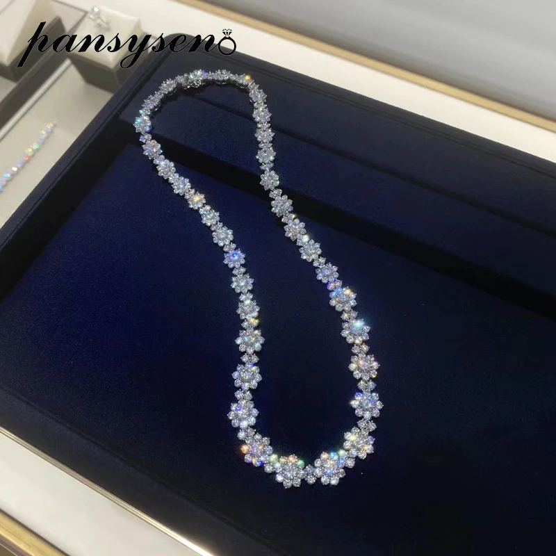Product Name: Sparkling 100% 925 Prata Esterlina Flor Simulado Moissanite Diamante Gargantilhas Colares Meninas Casamento Noivado Jóias Finas