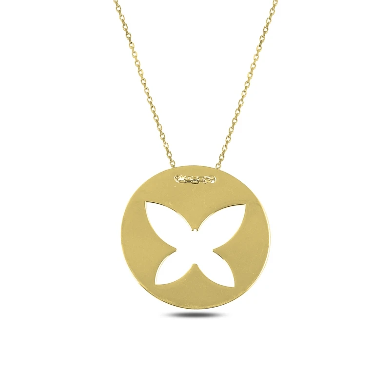 Product Name: Colar De Prata Da Placa Redonda Da Borboleta Esterlina 925