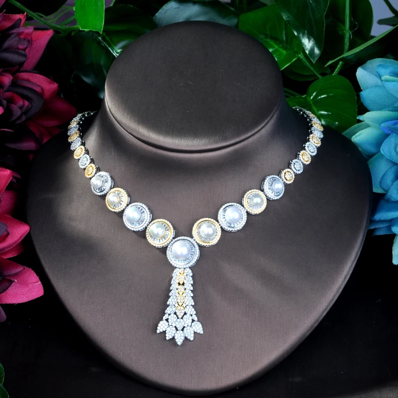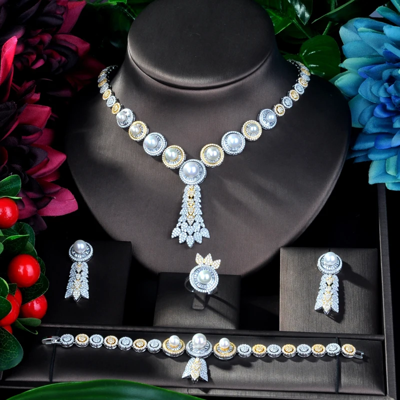 Special Offer HIBRIDE Grande Luxo Pérola Vestido De Casamento Das Mulheres Gargantilha Colar Brinco Set Jóias Para O Casamento N-865 Discount [NEW!!] Today!