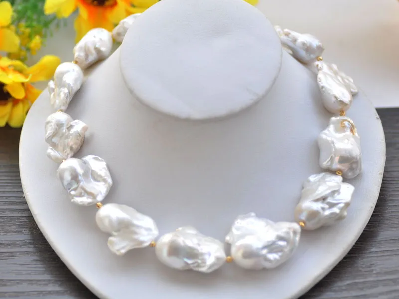 Product Name: P7001 Enorme 18 "35mm Branco Barroco Renascer Keshi Pérola Gargantilha Colar Cz