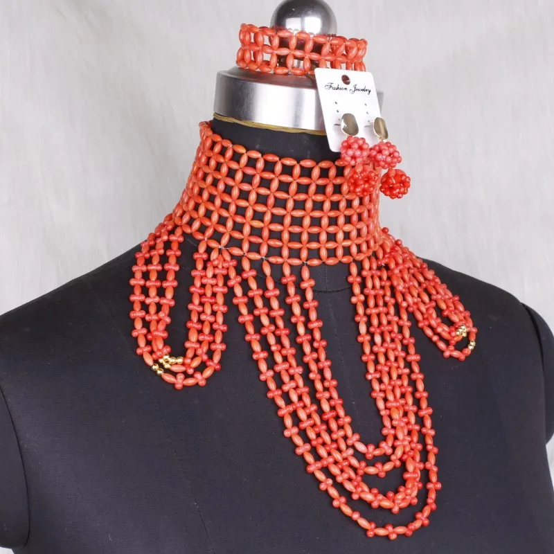 Special Offer Dudo 100% Natureza Contas Coral Artesanal Conjunto De Jóias Gargantilha Colar Conjunto Com Brincos E Pulseira 3 Peças Conjunto Nigeriano Africano Discount [NEW!!] Today!