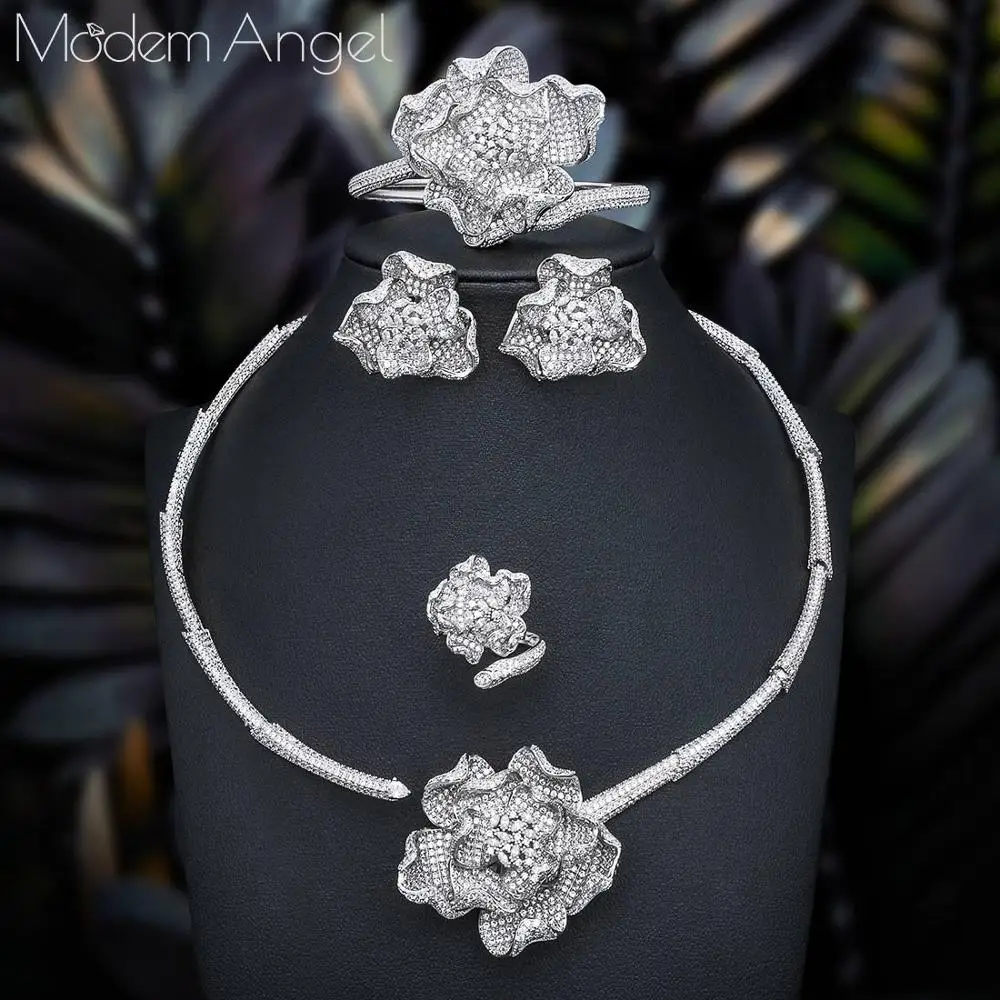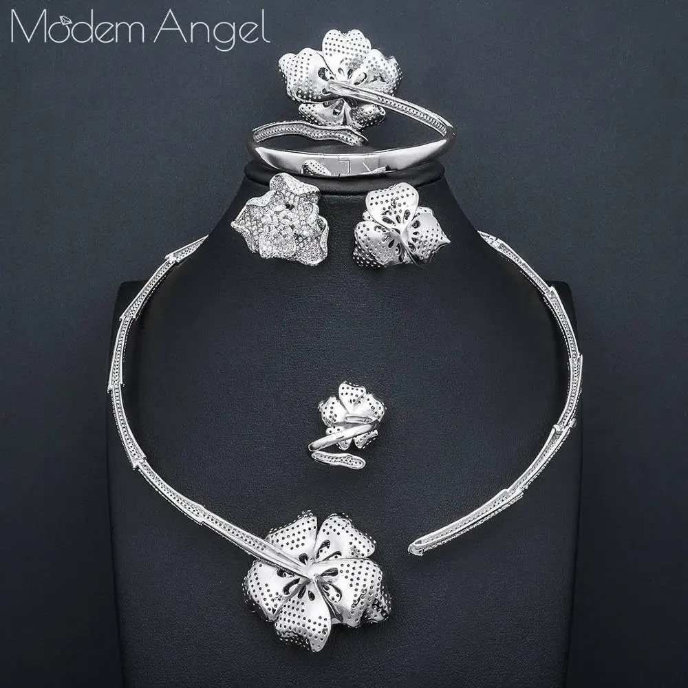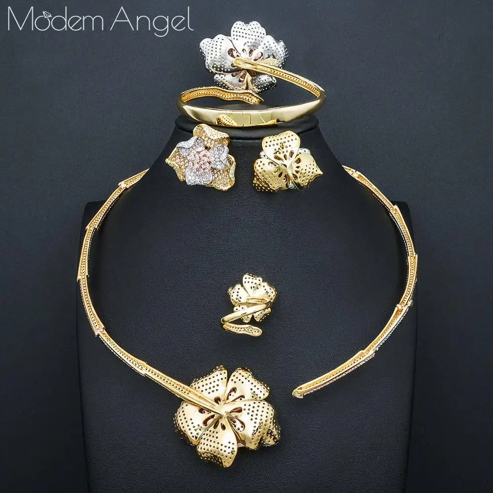 Special Offer Modemangel Na Moda Luxo 4 Pçs Flor Africano Gargantilha Conjuntos De Jóias Para O Casamento Feminino Completa Zircão Cúbico Dubai Conjunto De Jóias De Noiva Discount (40%OFF) Today!
