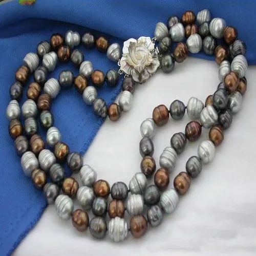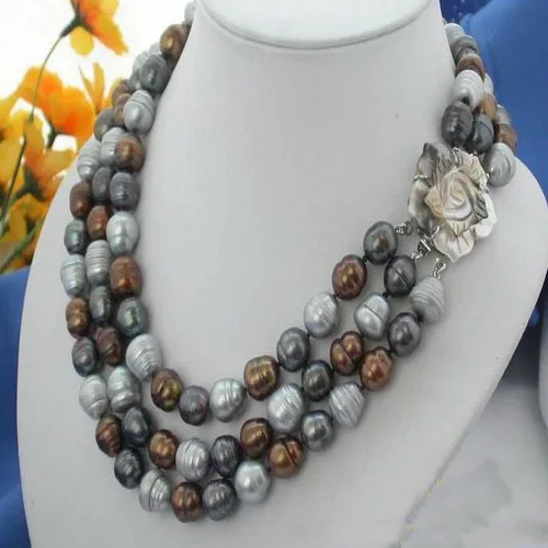 Special Offer Colar De Pérolas De água Doce, 3 Linhas 10-14mm Multicolor Arroz Cultivadas De água Doce Pérola Jóias, Enorme Shell Flor Fecho, Novo Frete Grátis. Discount [NEW!!] Today!