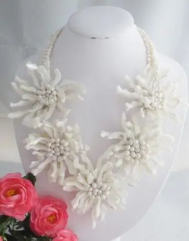 Special Offer Perfeito Africano Branco De água Doce Pérola Concha Flor Jóias Colar Para Casamento Artesanal Novo Frete Grátis Discount [NEW!!] Today!