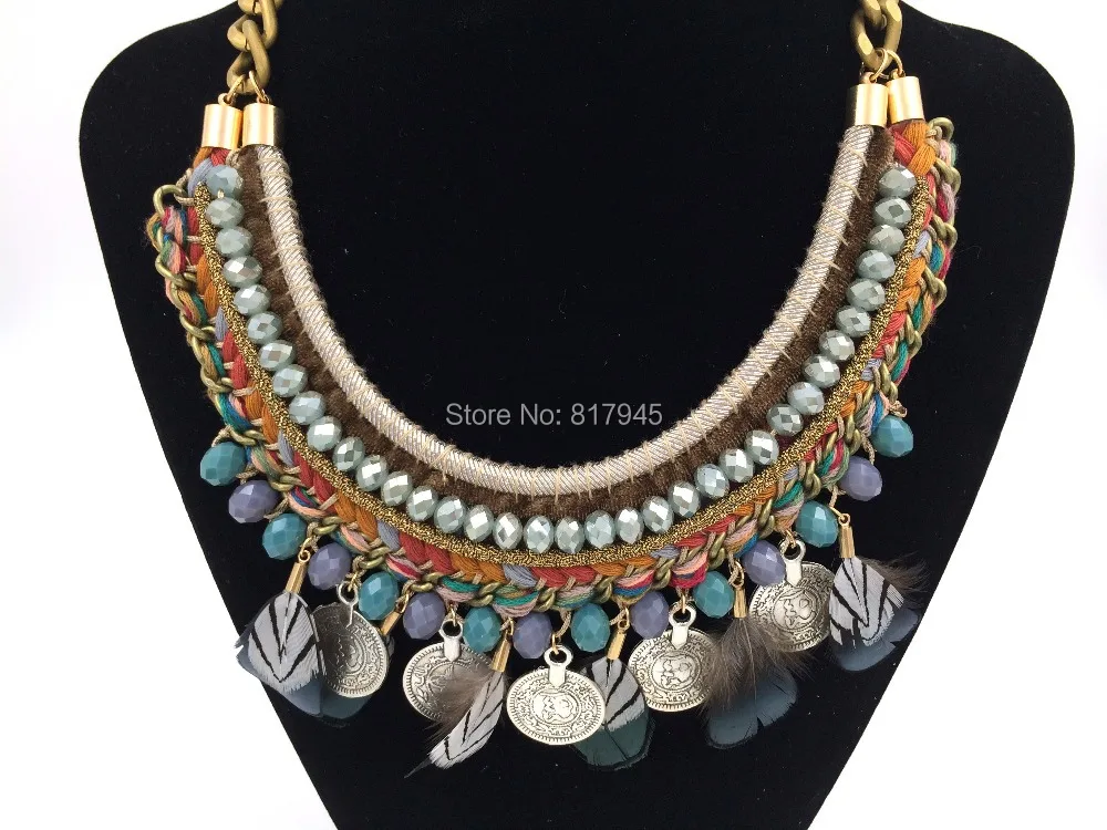 Product Name: 2016 Nova Moda Jóias Mão Fazer Colar Atacado Bohemia Estilo Borla Pena Colar