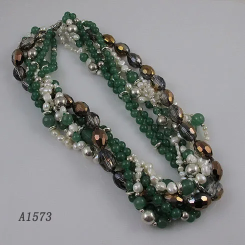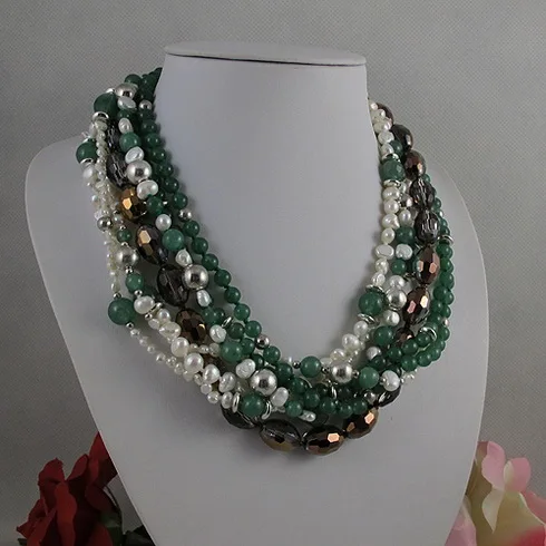 Product Name: Loja De Jóias De Pérolas únicas, 7row Jades Verde Barroco De Água Doce Branco Colar De Pérolas De Cristal, Mulheres Presente Da Jóia Perfeita