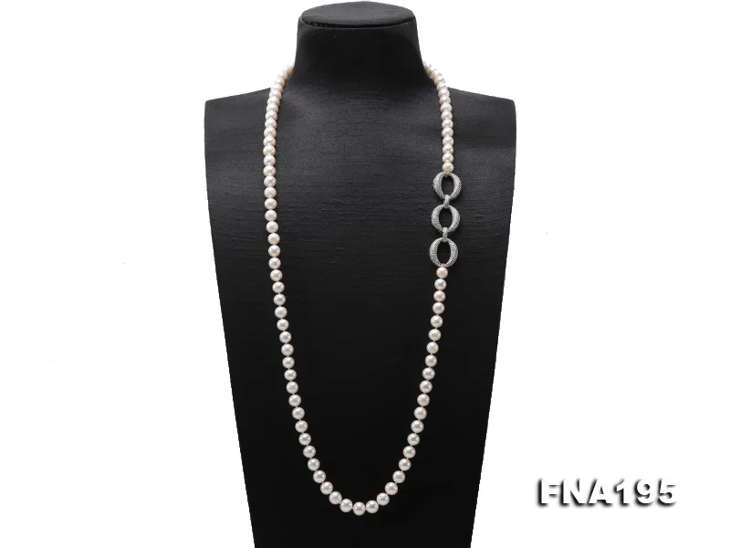 Special Offer Moda Elegante Senhoras Colar Branco Redondo Natural Pérola De água Doce Colar Longo Strass Prata Banhado Jóias Presente Amoroso Discount [NEW!!] Today!
