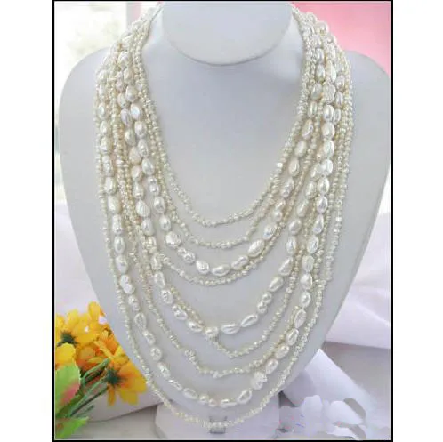 Special Offer Perfeito Artesanal Sorte Jóias, 10 Linhas 17 ''-29 Polegadas Branco Barroco De Água Doce Cultivadas Colar Da Pérola, Charme Mulheres Presente Do Partido Discount [NEW!!] Today!