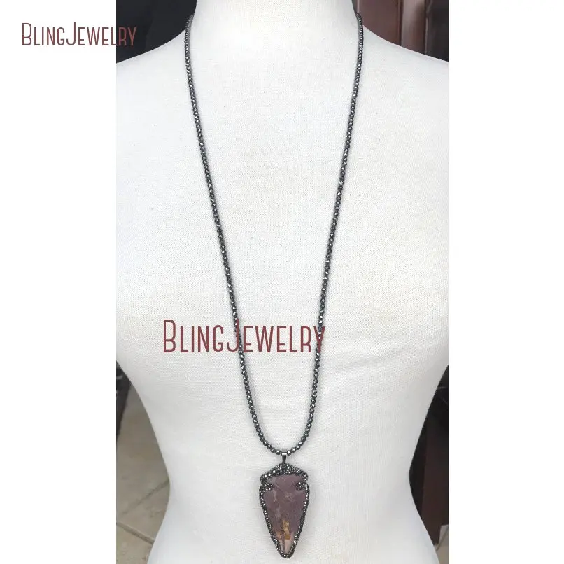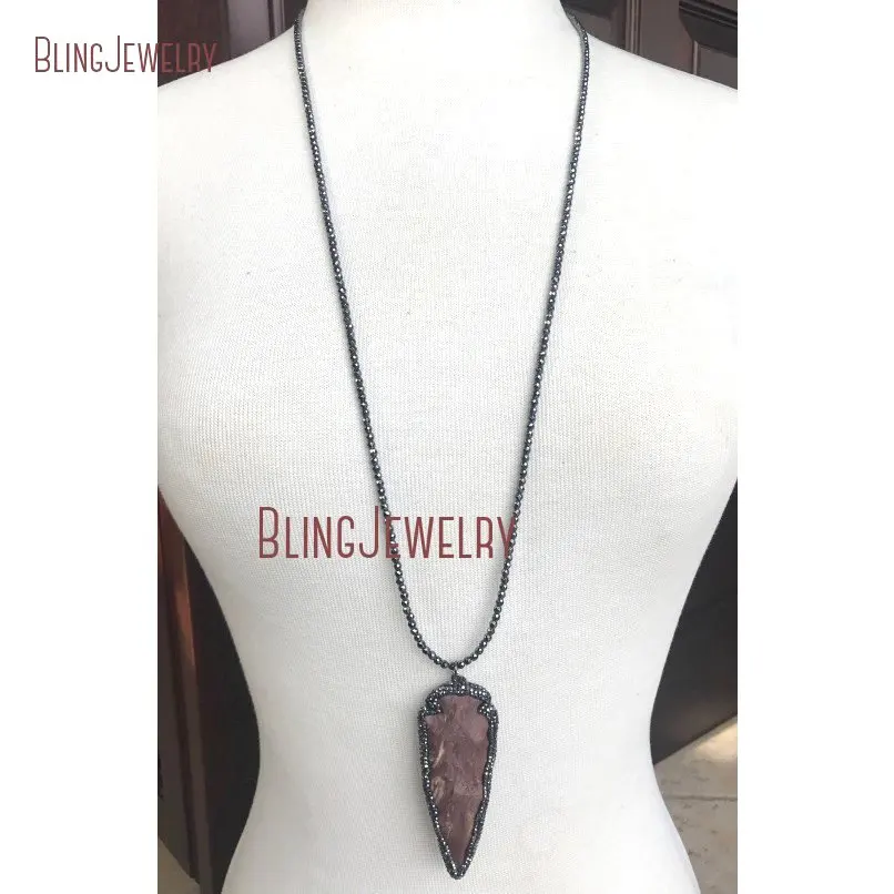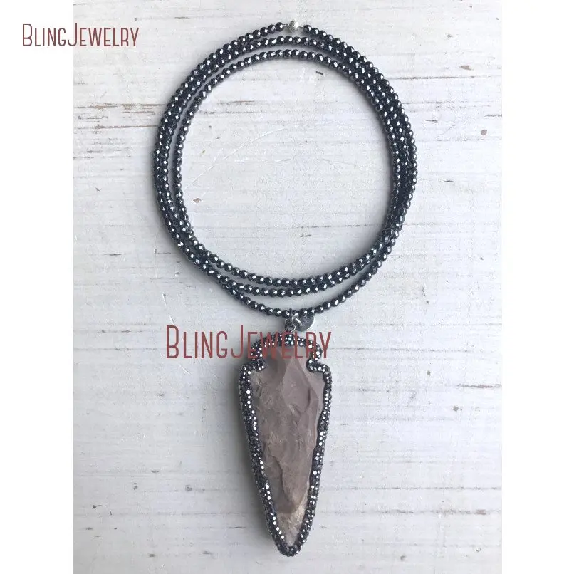 Special Offer Pave Cristal Bronze Arrowhead Pingente Frisado Colar De Hematita Pedra Jaspers NM18386 Discount (36%OFF) Today!