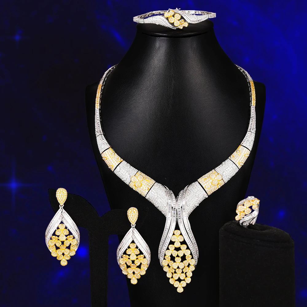 Special Offer Kellybola Lindo Flor Dupla Camada Jóias Para O Casamento Feminino Completo Micro Zircônia Cúbica Vestido Gargantilha Colar Brinco Conjuntos Discount (49%OFF) Today!