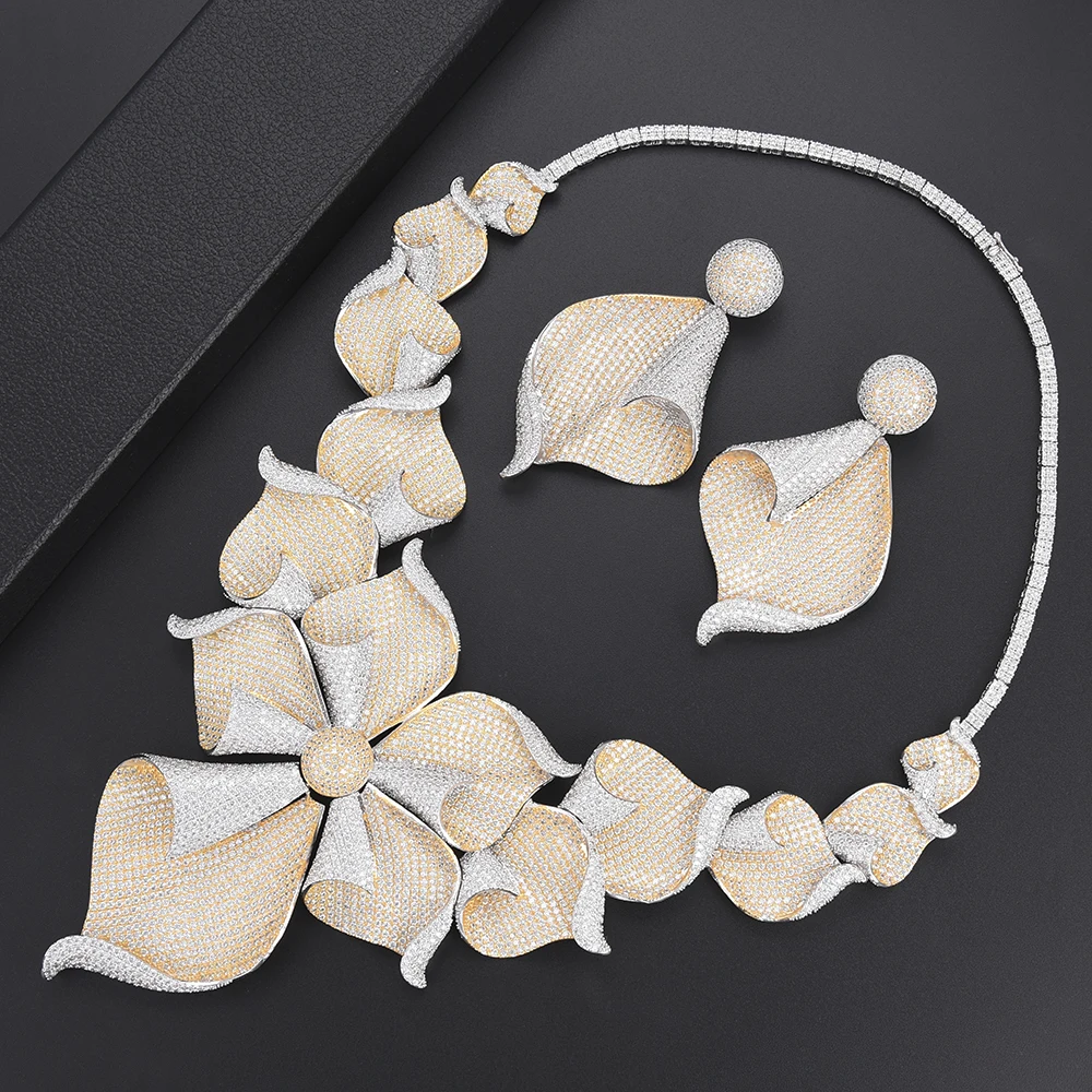 Product Name: LARRAURI Super Mulheres Marca Do Vestido De Casamento Gargantilha Colar Brinco De Luxo Flores Begônia Micro Completo Conjuntos De Jóias Cúbicos De Zircônia