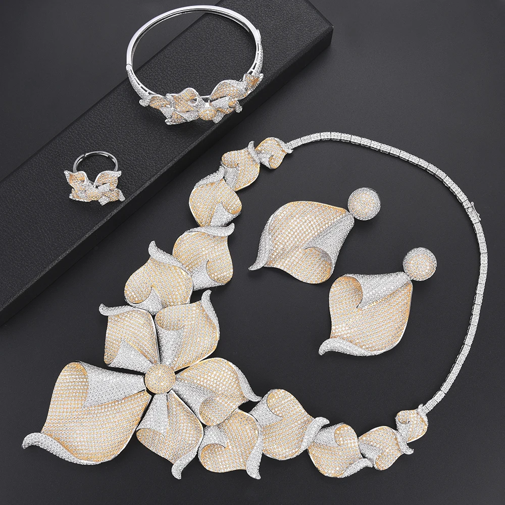 Special Offer LARRAURI Super Mulheres Marca Do Vestido De Casamento Gargantilha Colar Brinco De Luxo Flores Begônia Micro Completo Conjuntos De Jóias Cúbicos De Zircônia Discount [NEW!!] Today!
