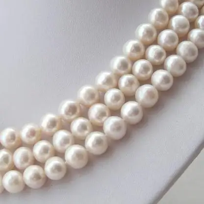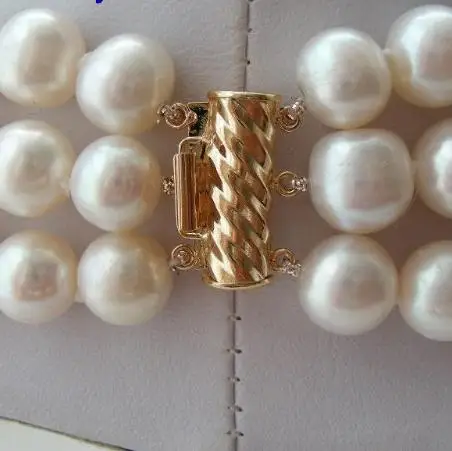 Special Offer Impressionante Linhas 3 9-10mm Rodada Branco De Água Doce Pérolas Cultivadas Colar, Genuine Pérola Jóias, 18-20 Polegadas, Nova Frete Grátis Discount [NEW!!] Today!