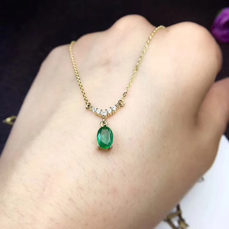 Special Offer Natural Verde Esmeralda Gem Colar De Pingente De Colar De Pedras Preciosas Naturais S925 Triang Sliver Clássico Simples Jóia Do Presente Do Partido Da Menina Discount [NEW!!] Today!