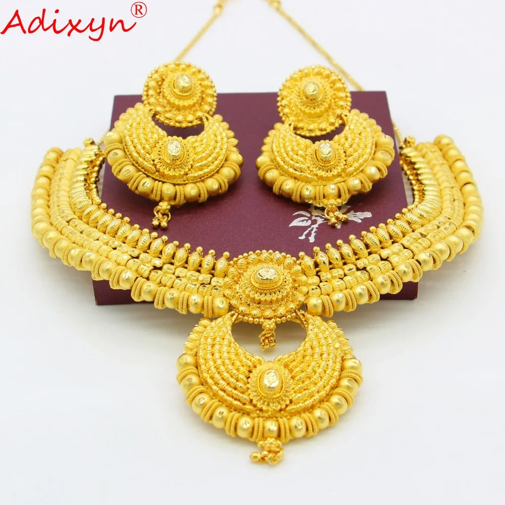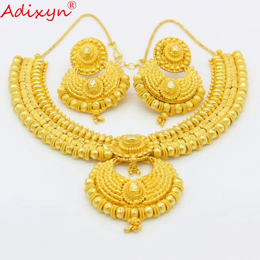 Special Offer Trendy Adixyn 45 Cm Gargantilhas Colar/Brinco Define Para As Mulheres Da Cor Do Ouro De Noivado Árabe/Etíope/Oriente Médio Presentes Do Partido N03147 Discount [NEW!!] Today!